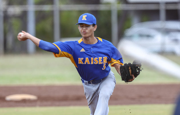 By Kyle Sakamoto on March 30, 2019Kaiser’s Curtis Chung Jr. was a model of efficiency on the mound Saturday against Moanalua, and he got a big-time defensive play from center fielder Jesse Stroede along the way to go the distance in a 4-1 victory in an OIA East baseball game at the Cougars’ field. Chung Jr. threw just 82 pitches in a five-hitter with no walks and eight strikeouts. A senior right-hander, Chung Jr. threw 61 total strikes, including first-pitch strikes to 20 of the 25 […]