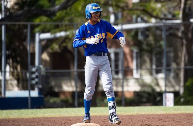 By Christian Shimabuku on March 15, 2019With a new name, Bryson Ewaliko is still at the top of his game. The Kailua senior, known as Bryson Ballesteros until just two weeks ago, locked down the save in Kailua’s 7-4 win over Castle on Friday afternoon. Ewaliko was overpowering in his one inning of work, striking out two Knights before getting Ian Rivera to fly out to end the game. Ewaliko earned Star-Advertiser first-team All-State honors as a junior alongside teammate Stone Parker and Waiakea’s David Nakamura, […]