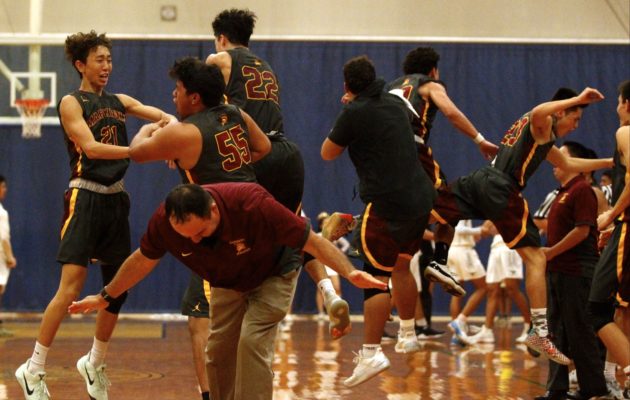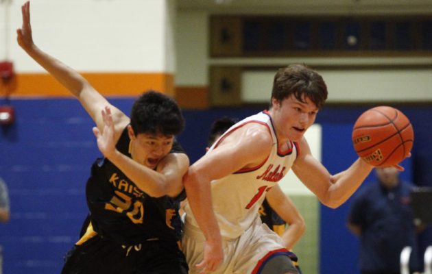 By Paul Honda on February 6, 2018All signs pointed to more Hurricane onslaught in the OIA. The Kapolei Hurricanes were healthy. Developing a now-rarely seen 3-2 matchup zone with 6-foot-4 Zoar Nedd at the top. Scoring and rebounding — and blocked shots – in good supply. They had no idea the Kalaheo Mustangs would match them play for play, and then some. In a stunning 56-53 semifinal win on Monday night, the Mustangs overcame every bit of adversity to advance to the championship game. Kalaheo (19-11 […]