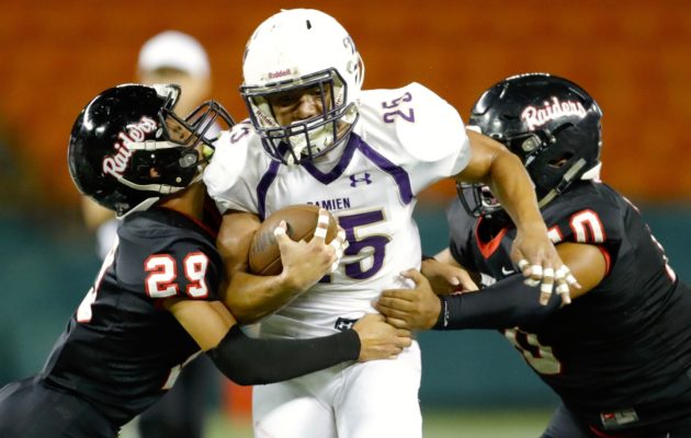 By Brian McInnis on October 26, 2019No. 8 Moanalua 21, No. 7 Leilehua 20, 2OT ———- Moanalua coach Savaii Eselu on Na Menehune’s wild 2OT 21-20 win over Leilehua for their first OIA Division I championship. pic.twitter.com/ZtJCGfppmJ — Hawaii Prep World (@HawaiiPrepWorld) October 27, 2019 Griffin Motas wins the OIA Division I title for Moanalua with his extra point, giving Na Menehune a 21-20 victory over Leilehua in double overtime. pic.twitter.com/gmrhcVDAaZ — Hawaii Prep World (@HawaiiPrepWorld) October 27, 2019 TOUCHDOWN MOANALUA. Na Menehune are an extra […]