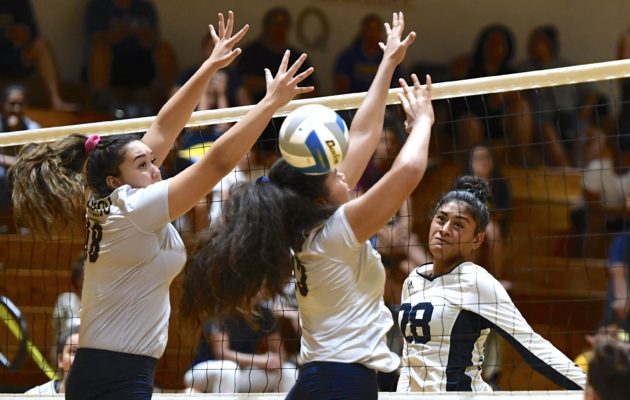 By Paul Honda on October 24, 2019Guy Enriques has a long history doing the things he loves. Fisherman. Volleyball player. Basketball player. He still drives from Ka‘u to Kailua-Kona to play in makule hoop leagues with a good friend, Richard Rasay. Then there’s coaching. This voyage to Honolulu was about a potential state championship for the unbeaten Kamehameha-Hawaii Warriors. They battled ILH runner-up Punahou dead even much of the night, but when they needed a hammer, the Warriors came up short in a 25-12, 21-25, 25-20, […]