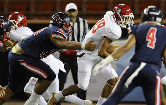 By Paul Honda on August 2, 2019The Kailua Surfriders visit the Saint Louis Crusaders for a scrimmage at Kalaepohaku on Saturday. Saint Louis, ranked No. 11 nationally by MaxPreps, got a dominant performance again from its defensive line.