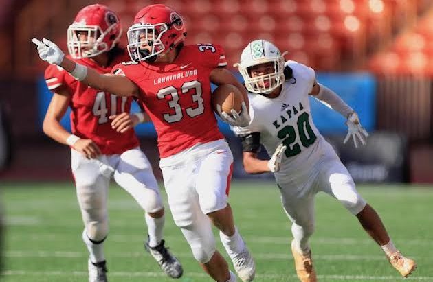 By Nick Abramo on November 24, 2018Lahainaluna remained the standard bearer in Division II by pulling off an amazing 34-32 comeback victory over Kapaa in the final of the First Hawaiian Bank/HHSAA Football State Championships on Saturday at Aloha Stadium. Joshua Tihada keyed the rally from a 26-7 halftime deficit for the Lunas’ third straight state championship. Tihada finished with 152 yards rushing and four touchdowns, and he scored three straight second-half rushing touchdowns — making it 26-14, 26-21 and then 27-26 with 7:02 to go. […]