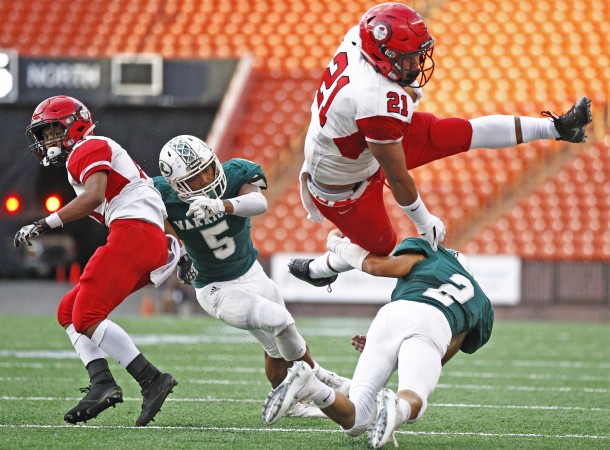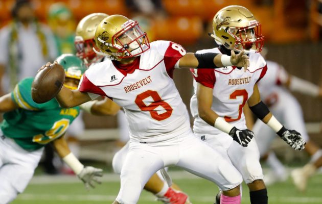 By Nick Abramo on October 28, 2018Twelve of the 14 state football tournament spots have been clinched. Seven teams — No. 1 Saint Louis, No. 3 Mililani, No. 5 Kahuku, Hilo, Waipahu, Kamehameha-Hawaii and Kapaa — punched their ticket into states with victories last weekend. Five teams — No. 6 Lahainaluna, No. 7 ‘Iolani, Roosevelt, Kaimuki Pac-Five — previously wrapped up state spots. No. 5 Campbell squares off against Farrington on Friday in the OIA Open third-place game for the last state Open Division slot. On […]