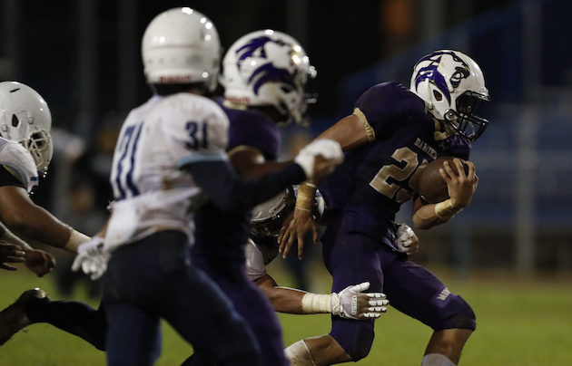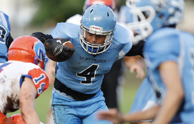 By Paul Honda on September 29, 2018The top-ranked Saint Louis Crusaders are nearly impeccable. Offense. Defense. Special teams. Offseason reps. Video. It was more of the same quest for perfection in a first-time meeting with Campbell on Friday night. Saint Louis left with a 55-7 runaway, a game that was in running-clock, mercy-rule mode for the entire second half. “We focused on taking their run game. In film study, they did the same run blocking, downfield blocking, as Waianae,” said linebacker Lawai Brown, who had the […]