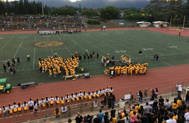 By Jason Kaneshiro on August 4, 2018Opening night at Mililani began with a somber farewell. Before taking the field for a nonleague game with Kailua, the Trojans observed a moment of silence in honor of freshman Kekiai Hett, a junior varsity defensive lineman who died suddenly on Friday. Hett’s No. 99 jersey hung on the back of the Mililani bench alongside a sign bearing his name while his junior varsity teammates posted a 50-18 win. The Trojans JV stayed on the track while the varsity warmed […]