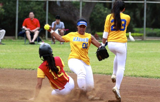 By Christian Shimabuku on March 20, 2018Kaiser has taken the lead in the OIA East softball race after a 6-4 home win over Roosevelt. Both teams were undefeated heading into Tuesday’s matchup, but the Cougars gained an early edge thanks in large part to the Aholelei sisters. All four of them had a hand in the victory, helping the Cougars improve to 6-0 while the Rough Riders dropped to 5-1. Primrose Aholeilei tossed a complete game, striking out four and walking one while giving up eight […]