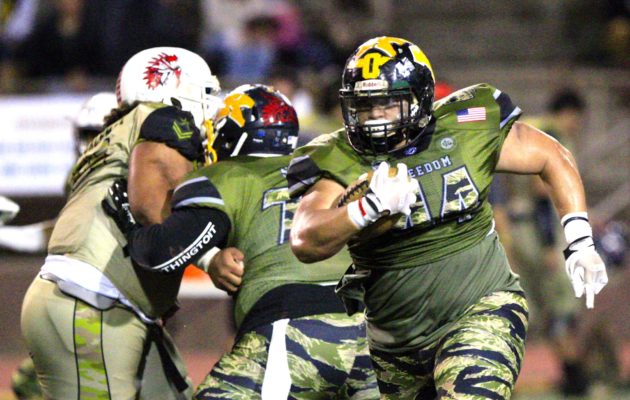 By Paul Honda on November 25, 2017Defense, defense, defense. Team Freedom’s 25-7 win over Team Liberty in the Open Division battle of the JPS Classic turned out to be a showcase of elite defense. It ended much as it began, with Tasi Malepeai (Mililani) and Kukea Emmsley (Kapolei) corralling Liberty quarterback Tai-John Mizutani for a sack during a last-ditch drive. On the next play, Kapolei lineman Aaron Faumui sealed it with a sack of his own. In all, Mizutani did magical work to not get sacked […]