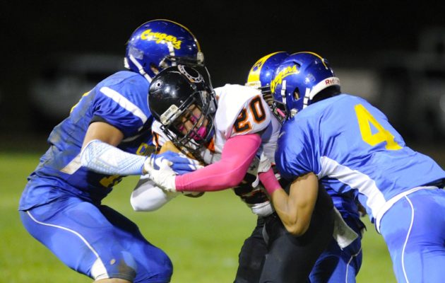 By Hawaii Prep World on September 1, 2017KAISER COUGARS (0-2, 0-2) Head coach: Arnold Martinez Kaiser roster VS. CAMPBELL SABERS (2-2, 2-1) Head coach: Darren Johnson Campbell roster ————————— Campbell 71, Kaiser 0, FINAL 11:02: FINAL. Most points scored by Campbell, most yielded by Kaiser in a total mismatch. Campbell 71, Kaiser 0, 7:31 4Q 10:52 p.m.: Sky Lactaoen breaks free up the middle on his first handoff of the game and goes all the way from 45 yards. XP good and this is now the most […]