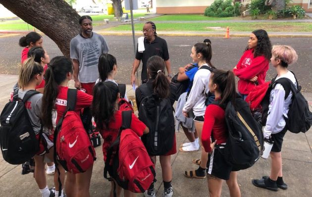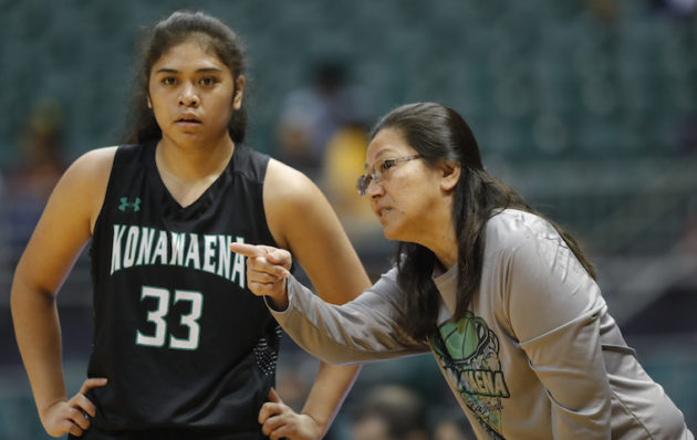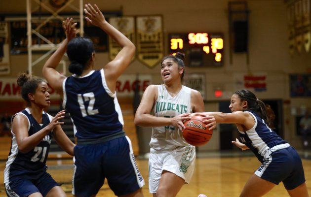 By Paul Honda on November 17, 2019The Konawaena Wildcats came to Oahu eight strong. Then one player suffered a concussion. Another player suffered a knee injury. By the end of their stay, the Wildcats found a way to go 3-1 at the Matsumoto Law Group Black & Gold Classic, beating Punahou (48-44), Maryknoll (57-39) and Kamehameha (44-43). Coach Bobbie Awa chatted after her team’s narrow win over Kamehameha — on Caiyle Kaupu‘s jump hook in the lane with :05 left.