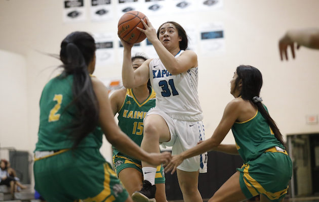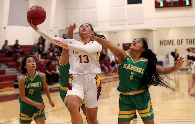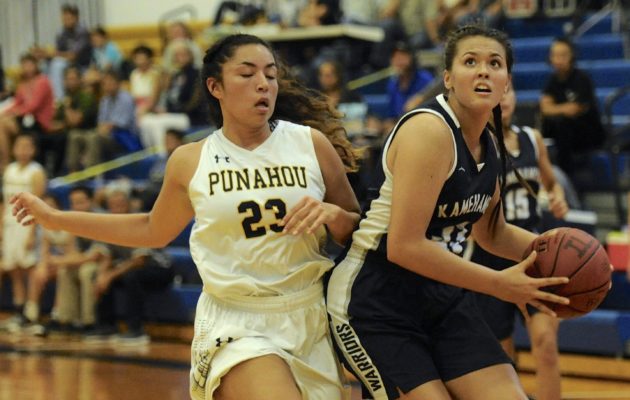 By Paul Honda on January 19, 2019Leverage can be everything in the quest for a state title, especially when the starting point is in the Interscholastic League of Honolulu. No. 5 Kamehameha made sure of it on Friday night with a 53-41 win over No. 3 Maryknoll on the Spartans’ home court. The Warriors (14-5 overall) sealed second place with the tiebreaker win, earning a first-round bye in the upcoming playoff tournament. “That bye is big. In the ILH tournament, the first two rounds are back-to-back […]