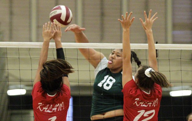 By Paul Honda on October 11, 2017She’s one of just two seniors on the Aiea girls volleyball team, but Leslie Mamai-Lagafuaina embraces her role as a leader. The 6-foot-2 outside hitter blasted 21 kills as Aiea outlasted Kalani 25-14, 22-25, 25-20, 25-21 on a muggy Wednesday night at Farrington’s Richard Kitamura Fieldhouse. Aiea advanced to the quarterfinal round of the OIA Division I playoffs. Mamai-Lagafuaina added an ace and a block for Na Alii (8-3), who will play East Division top seed Moanalua on Thursday night. […]