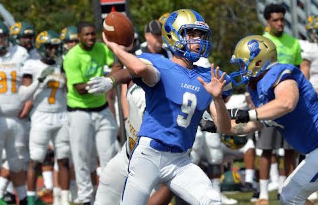 By Billy Hull on October 30, 2017Worcester State quarterback Noah Brum, a 2014 Kalani graduate, was named the Massachusetts State Collegiate Athletic Conference co-offensive player of the week on Sunday. Brum, who owns the two best single-game passing performances ever at Kalani, threw for 364 yards and set the Lancers’ single-game completion percentage record of 77.8 percent (28-for-36) with five touchdowns in a 48-0 shutout of Massachusetts Maritime on Saturday in his final home game of the season. Brum threw all five scoring passes in the […]