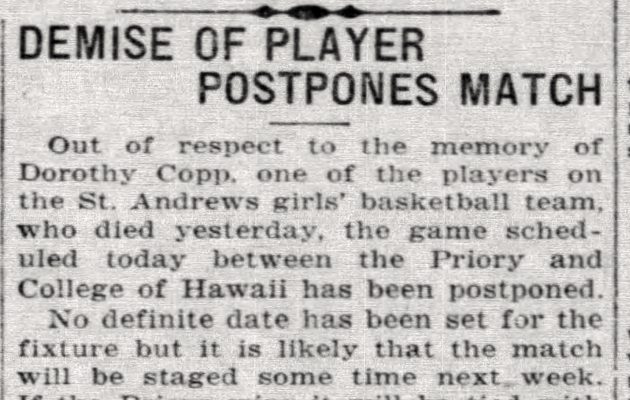 By Jerry Campany on March 17, 2020With prep sports suspended due to the coronavirus, Hawaii Prep World will look back on a random day in history. Today, we check out what the landscape looked like 100 years ago. Hawaii was battling an influenza epidemic in 1920, but the Honolulu Advertiser happily reported that although 25 new cases of the flu were reported on that day, nobody died. There had been 3,492 cases reported since the beginning of the year and 192 of them died in the […]