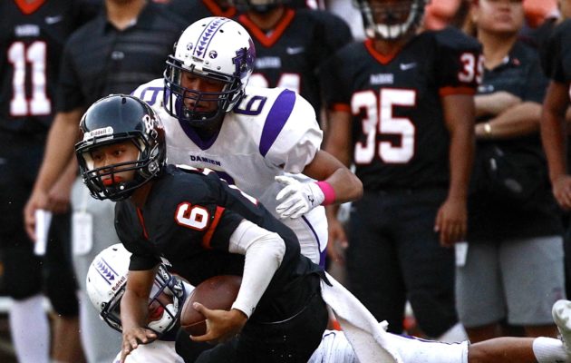 By Paul Honda on September 9, 2017Highlights plus a post-game interview with St. Francis Coach Kip Akana. St. Francis at ‘Iolani, Eddie Hamada Field. Friday, Sept. 8, 2017. Features two TD catches by St. Francis WR Scott McLeod and two by ‘Iolani WR Justin Genovia, as well as four rushing TDs by Saints RB Jonan Aina-Chaves. Sunday, 2:20 p.m. Aina-Chaves video added