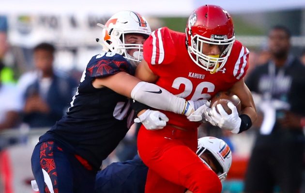 By Paul Honda on November 2, 2020Seau Maiava is a company man. The speedy outside linebacker from Kahuku took the field in St. George, Utah, for his Highlight-Hawaii Silver team on Friday as 11v11 scrimmages began. Three games later, the 6-foot, 200-pound senior had accumulated 16 sacks — as a defensive end on the strong side. Maiava’s performance earned co-MVP honors as a DE in the PTP Sports National Showcase on Saturday. He and fellow Highlight-Hawaii D-end Tevarua Tafiti were among the three defensive ends honored. […]