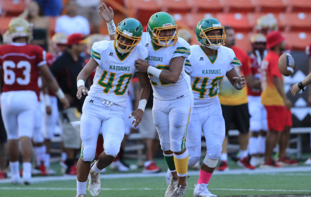 By Nick Abramo on November 23, 2019Kapaa 35, Kaimuki 28, FINAL 4:34: Game over. 4:33: Kapaa takes a knee with 25 seconds left. Kaimuki timeout. 4:31: Baba Na-O picks up 6 yards and a first down at the 47. 1:00 left. Na-o then gains 8 yards but goes out of bounds, stopping the clock. Then Davis gains 18 yards to the 21. 4:29: Davis gets a first down with a 17-yard run. Warriors ball at their 40. 2:12 to go. 4:27: On third down, Davis goes […]