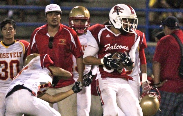 By Christian Shimabuku on September 29, 2017No team wants to have its season end in September, but no team wants to end its season with a loss, either. With full knowledge that Friday night’s contest would be its last of the season, Kalani rode the electric arm of Seth Tina-Soberano and kept its foot on the pedal in a 41-13 rout of Kalaheo in what doubled up as homecoming and senior night for the Falcons. “It’s great to end the season like this. It’s great to […]