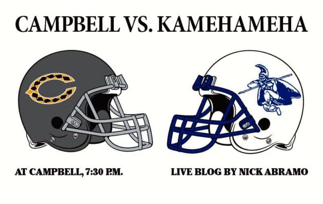 By Nick Abramo on September 7, 2018No. 4 Campbell 26, No. 6 Kamehameha 22, final 10:48: Game over. 10:45: Kamehameha’s onside kick is recovered by Campbell’s RJ Tadeo. 10:45: Campbell fumbles the snap on a victory formation. It’s recovered by Kamehameha’s Kupono, who laterals to Tiger Peterson and he runs 24 yards for a touchdown. Rezentes kicks the extra point. CAMPBELL 26, KAMEHAMEHA 22, 0:44 left in game. 10:40: Kamehameha driving, but Warriors hav a fourth down and 14 from the Campbell 25. Tyrese Tafai knocks […]