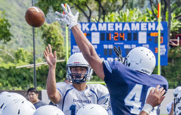 By Paul Honda on July 29, 2017Though it was extremely early in preseason, the Kahuku Red Raiders and Kamehameha Warriors showed plenty of promise in their controlled scrimmage at Kunuiakea Stadium on Thursday night before a crowd of about 1,000.