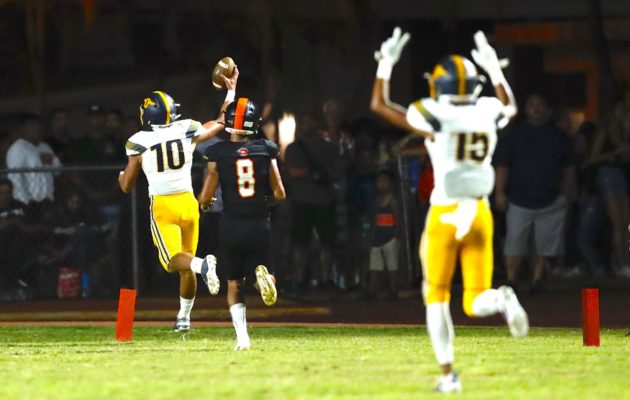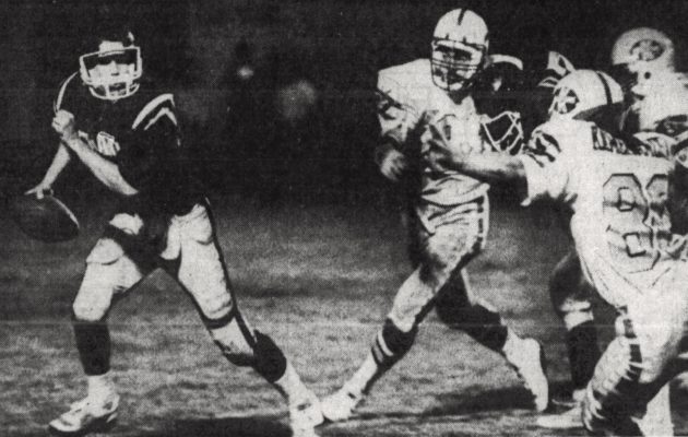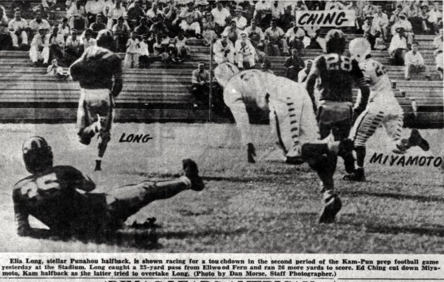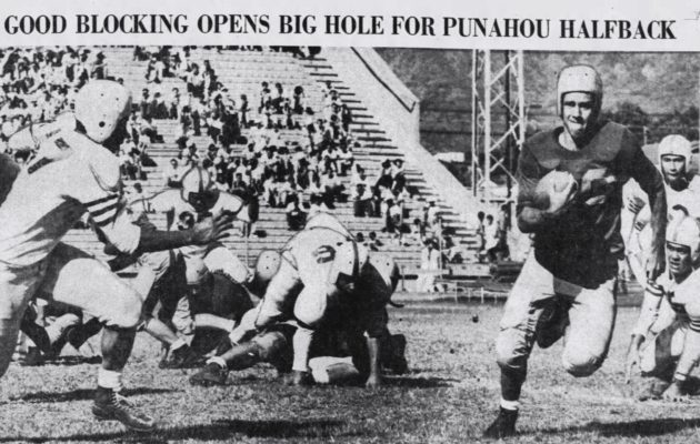 By Jerry Campany on October 14, 2020On this date in 1995, Punahou running back Afatia Thompson put on a show for the last time in his prep career. Thompson ran for 119 yards and three touchdowns as top-ranked Punahou blitzed Pac-Five 48-28 at Aloha Stadium. The Wolf Pack took an early lead before Thompson took over. The future UH fullback tied it with a 2-yard plunge and followed it up with scores from 10 and 13 yards. Thompson needed only 15 carries and one reception to […]