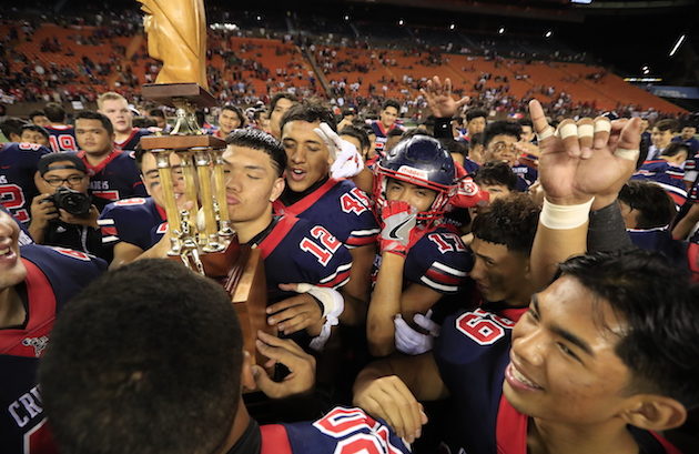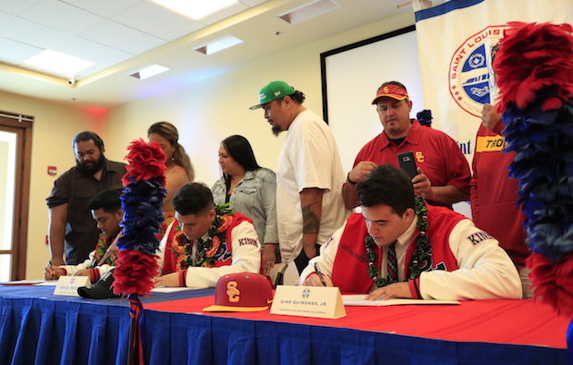 By Christian Shimabuku on December 19, 2018Gino Quinones and Ben Scott didn’t have a single FBS offer when both signing periods came and went as juniors. Then on April 16, Hawaii offered both of them. After big summers and stellar senior seasons, each signed pledges to Pac-12 schools on Wednesday at Saint Louis’ campus. Scott, who verbally committed to Arizona State in August, made it official after signing his letter of intent. Quinones signed with Southern California, his dream school, after committing in May. “It’s super […]