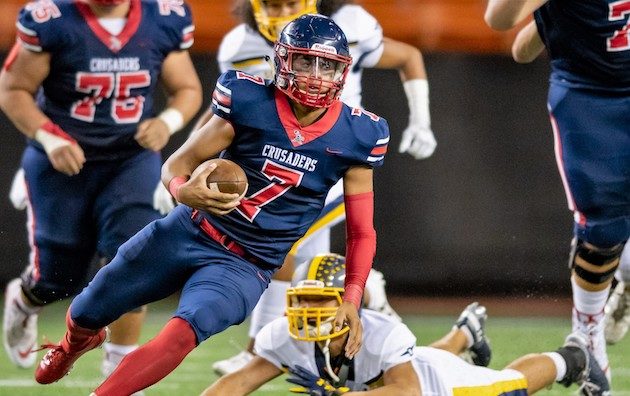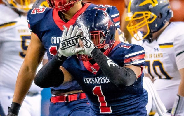 By Paul Honda on October 29, 2018Defense wins championships at Saint Louis. The Crusaders forced six turnovers by Punahou en route to a 45-21 win over the Buffanblu for the Interscholastic League of Honolulu Open Division championship on Saturday at Aloha Stadium.