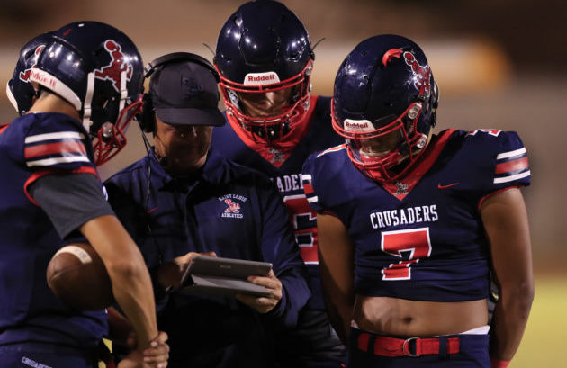 By Paul Honda on September 29, 2018The top-ranked Saint Louis Crusaders are nearly impeccable. Offense. Defense. Special teams. Offseason reps. Video. It was more of the same quest for perfection in a first-time meeting with Campbell on Friday night. Saint Louis left with a 55-7 runaway, a game that was in running-clock, mercy-rule mode for the entire second half. “We focused on taking their run game. In film study, they did the same run blocking, downfield blocking, as Waianae,” said linebacker Lawai Brown, who had the […]