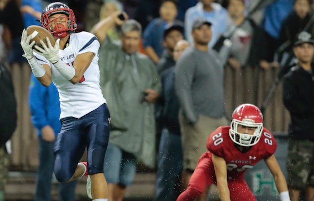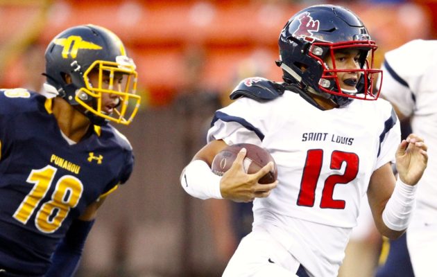 By Billy Hull on September 18, 2017Saint Louis has been ranked No. 1 all season by the Honolulu Star-Advertiser, but until last week’s loss to Bingham (Utah), No. 2 Kahuku had been the team from Hawaii ranked in the MaxPreps Xcellent 25. After a sound 49-13 thrashing of Punahou on Saturday night at Aloha Stadiun, the Crusaders are finally getting their deserved recognition nationally. Saint Louis has broken into the MaxPreps national rankings and is No. 24 this week as the only new team to enter […]