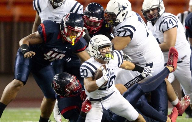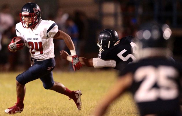 By Paul Honda on September 2, 2017If they win, Cal Lee is barely happy. If they lose, one can only imagine. The No. 1-ranked Saint Louis Crusaders were dominant in a 44-0 win over No. 5 Kamehameha on Friday night at Aloha Stadium, which answered the question of whether the Warriors were ready to take down the defending ILH and state champions. It wasn’t exactly a full accounting for Kamehameha, which lost returning quarterback Thomas Yam to injury in the first half. He’d already suited up […]