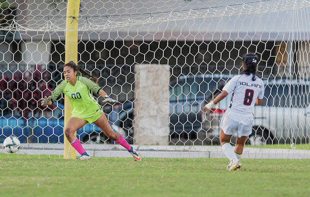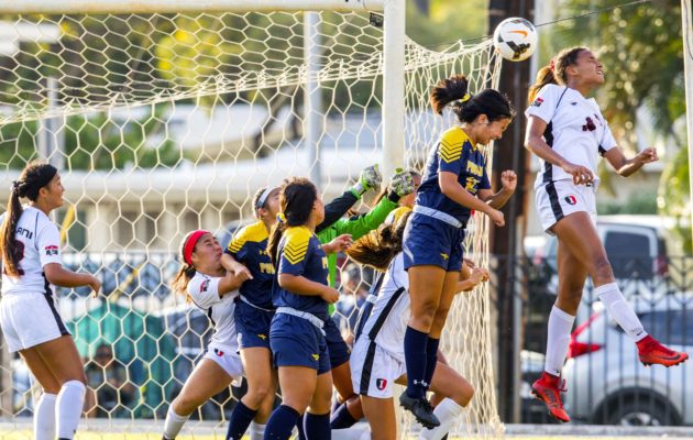 By Nick Abramo on February 7, 2018It was the most post-overtime penalty kicks Taylor Venenciano has seen in a soccer match, but there are those who have witnessed more than the 11 by each team in ‘Iolani’s 1-0 (9-8 PKs) state-tournament victory over Moanalua on Tuesday. The Raiders (11-3-1) finally edged Na Menehune (10-3-1) when Venenciano sealed it with a goal on the 22nd PK. Moanalua coach Nikki Dela Pena remembers a game in which there were 23 kicks by each side, and ‘Iolani coach Kristin […]