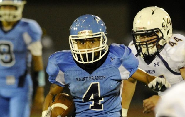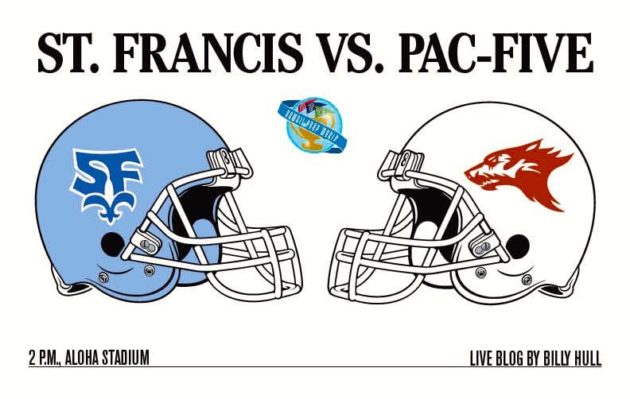 By Billy Hull on September 15, 2018St. Francis 26, Pac-Five 6 BOX SCORE at Aloha Stadium St. Francis (5-0, 4-0) 0 0 20 6 — 26 Pac-Five (2-2, 2-2) 0 0 0 6 — 6 StF—Shepherd Kekahuna 92 interception return (Jonah Aina-Chaves run) StF—Kekahuna 98 run (run failed) StF—JP Tilly 42 interception return (run failed) StF—Chase Akana 10 pass from Bubba Akana (run failed) P5—Angelo Coluccio 9 pass from Chase Hedani (kick failed) RUSHING—St. Francis: Kekahuna 5-110, Dayton Leong 2-23, Aina-Chaves 6-20, B. Akana 6-13, Tilly […]