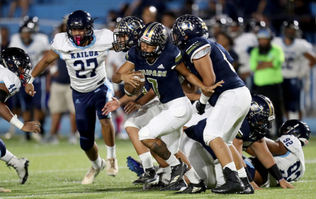 By Paul Honda on October 20, 2019No. 7 Leilehua dug deep into the well and turned a scoreless battle into a 13-7 victory at Hugh Yoshida Stadium. Mules coach Mark Kurisu shared his thoughts about ousting the Marauders and all the game-within-a-game adjustments at the point of attack. Waipahu coach Bryson Carvalho shared his gratitude and appreciation following the final game for senior running back Alfred Failauga, Hawaii’s all-time statewide rushing leader. Failauga finished with 5,795 rushing yards and 62 rushing TDs on 940 attempts in […]