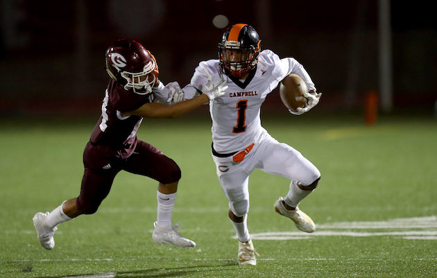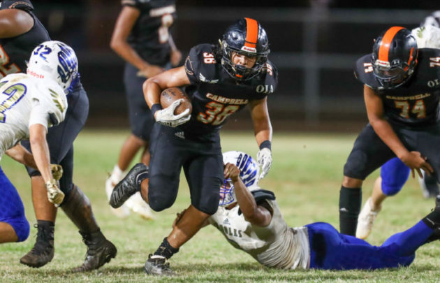 By Paul Honda on September 9, 2019After a cornerstone win over Nevada powerhouse Liberty, a matchup on the road at Waianae could have been an emotional letdown scenario. Instead, the Trojans marched to a 50-6 victory behind a stellar defense sparked by defensive end Tristen Townes (59). Quarterback Brendyn Agbayani fired three TD passes in the victory.