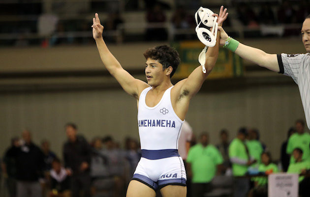 The boys championship matches, all 14 including a special highlight package, at the Texaco/HHSAA Wrestling State Championships, Blaisdell Arena, Saturday, Feb. 21, 2019.