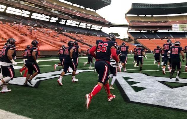 It was a bit of a bittersweet night for Punahou senior linebacker Maninoa Tufono, but he still walked out of Aloha Stadium smiling. Moments after his football season ended with Punahou’s loss to Saint Louis for the ILH Open championship, he had a shout out for sister Mokihana Tufono, a freshman outside hitter for ‘Iolani. His sister’s team upset defending champion Kamehameha earlier in the evening to capture the Division I girls volleyball state championship at Blaisdell Arena.