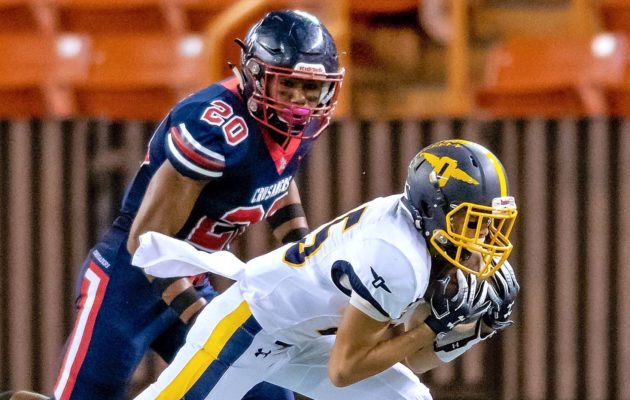 Defense wins championships at Saint Louis. The Crusaders forced six turnovers by Punahou en route to a 45-21 win over the Buffanblu for the Interscholastic League of Honolulu Open Division championship on Saturday at Aloha Stadium.