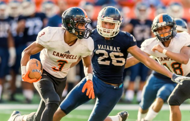 By Paul Honda on November 18, 2017Scoring highlights from the Division I final between Hilo and Damien in the First Hawaiian Bank/HHSAA Football State Championships at Aloha Stadium. Saturday, Nov. 18, 2018. Score: Vikings 35, Monarchs 19.