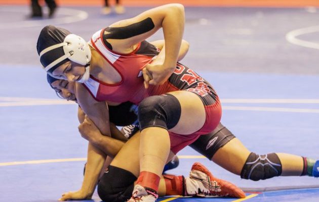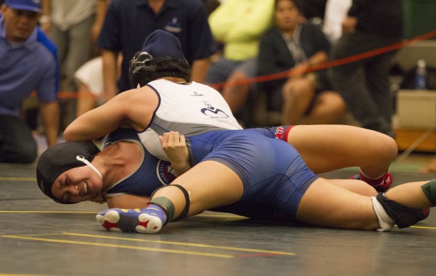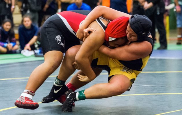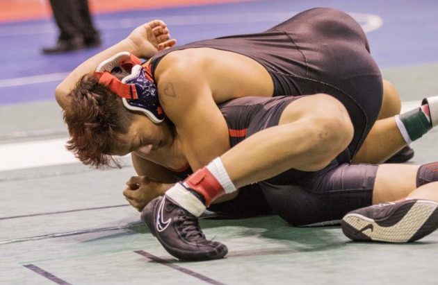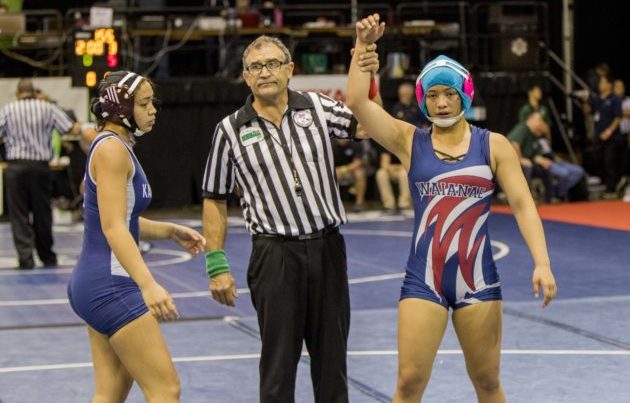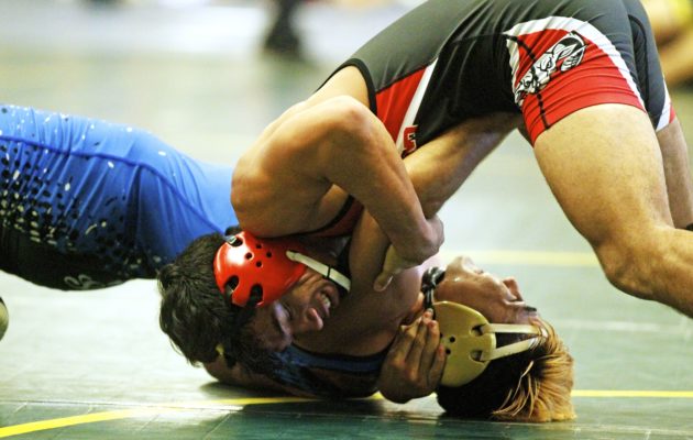 By Nick Abramo on February 14, 2018Kamehameha’s Kysen Terukina, the No. 5 wrestler in Hawaii Prep World’s pound-for-pound rankings, avenged a loss earlier this season in the quarterfinals of the state wrestling championships Wednesday at Blaisdell Arena. At 120 pounds, Terukina pinned Baldwin freshman Kahilihiwa Joy to move on to the semifinals. At the Officials tournament in Decmeber, Joy pinned Terukina. “My coaches always tell me it doesn’t matter who wins in the beginning,” Terukina said. “My older brother Shayden Terukina was a three-time state champion […]