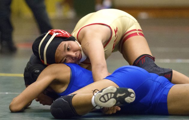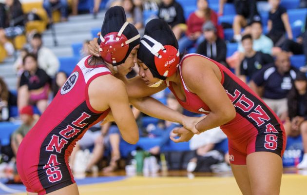 By Nick Abramo on January 29, 2018Five matches from the OIA West wrestling championships Saturday are shown below. The matches are: >> Boys 195 final: Alize Wright (Campbell) def. Tao Tuulima (Kapolei), 6-5 >> Boys 170 third place: Gianni Oyadomari (Kapolei) def. Kachi Respicio (Campbell), 6-4 >> Girls 138 final: Kamakana Hernandez-Waialae (Waianae) def. Wynter Brown (Pearl City), 8-3 >> Girls 155 final: Kelani Corbett (Leilehua) def. Nina Seoane (Pearl City), 11-5 >> Boys 170 final: Kasey Kikuyama (Pearl City) def. Keanu Punley (Leilehua), 3-0