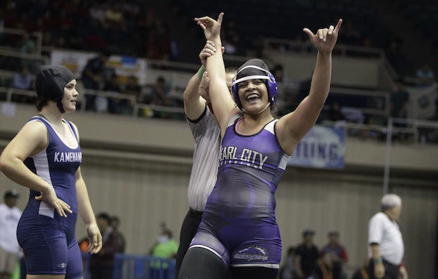 By Nick Abramo on December 22, 2017Freshman Shayna Kamaka had an upset in view, but she couldn’t pull it off in the Officials wrestling tournament at Leilehua on Friday. The Baldwin wrestler at 168 pounds was in front of two-time state champion Kelani Corbett of Leilehua by two points with 39 seconds left in the quarterfinals. Corbett scored with an escape to make it a one-point deficit. Kamaka needed to hold on to Corbett’s leg for the final 10 seconds, but she let go, and Corbett […]