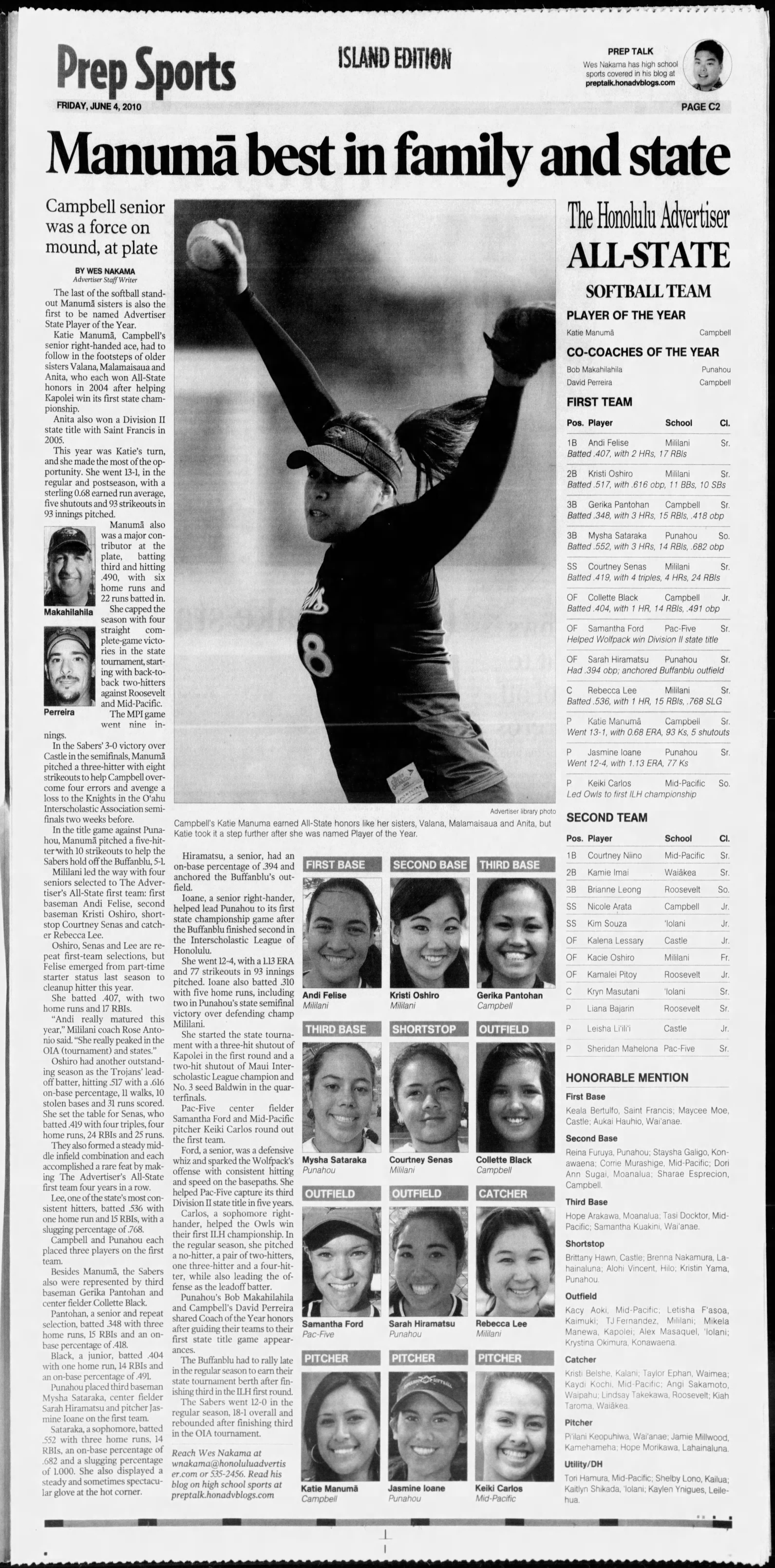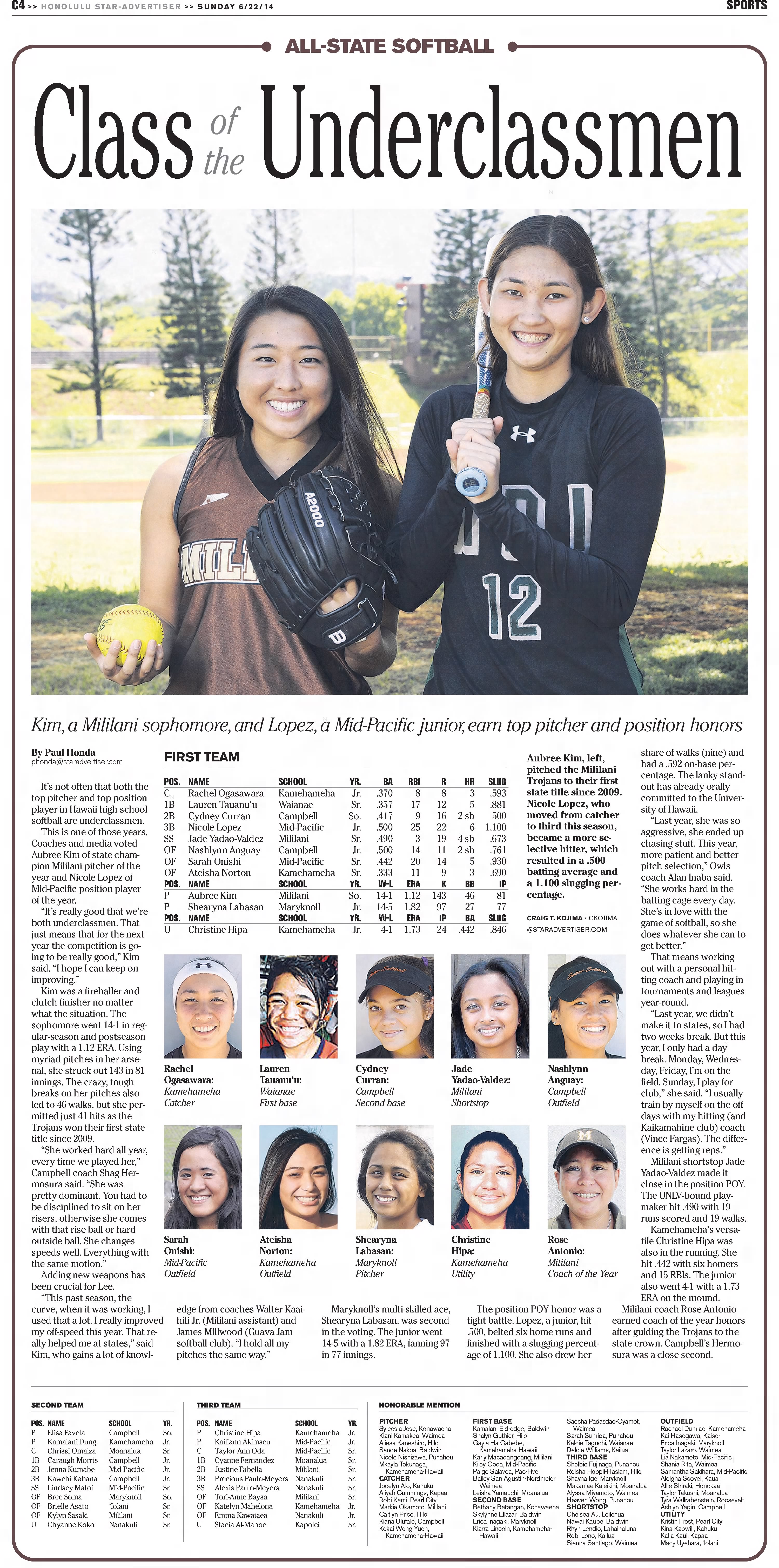 With the Star-Advertiser’s softball all-state team coming out Sunday, here is a look at the All-State teams from 2010-present.