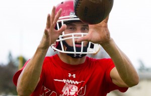 Kahuku Red Raider defensive back Kekaula Kaniho photographed at practice on Wednesday evening.