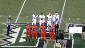 Kahuku’s #62, Malosi Alapa, is wearing #49 tonight. He switched from left guard to fullback last week in the semifinal game.