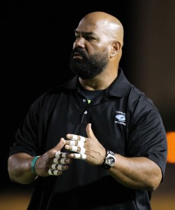 2014 August 30 – Kapolei Head Coach Darren Hernandez in the game between the Mililani Trojans and the Kapolei Hurricanes at the Kapolei High School Stadium. PHOTO BY DARRYL OUMI