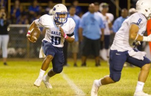 Kailua quarterback Mark Lagazo ran with the ball during the first round of the OIA Division I playoff game against Waianae on Friday night.