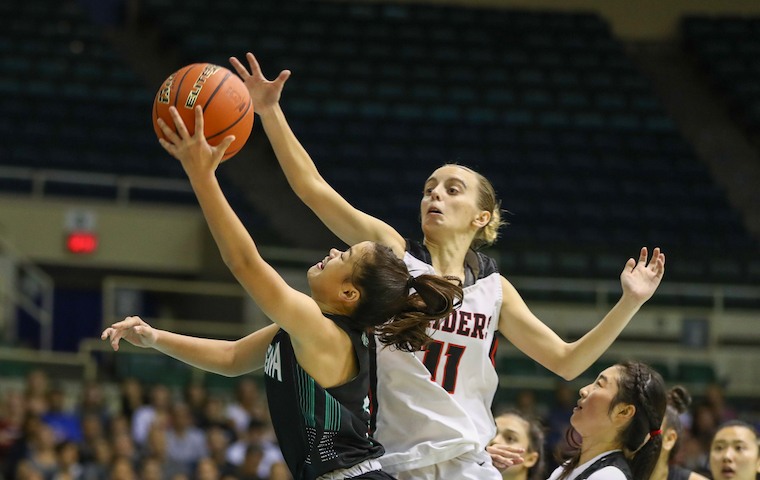 The lanky, athletic Pahukoa scored 13 points per game with 3-point range just inside the midcourt circle/logo. She averaged 13 ppg during the state tourney as Na Alii eliminated Radford and nearly upset Konawaena before losing 40-37.