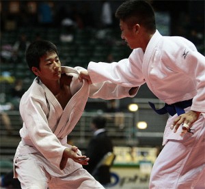 SPT – Mid-Pacific’s David Terao grapples with Moanalua’s Brant Tsuda in the 121-pound bout of the HHSAA State Judo Championship on Saturday, May 7, 2011 at Stan Sheriff Center in Manoa. (Jamm Aquino/Honolulu Star-Advertiser).