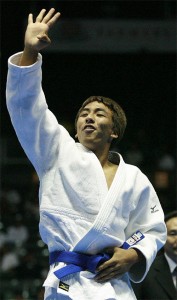 SPT JUDO – Moanalua’s Brady Lafortune signaled the number four after winning his fourth consecutive HHSAA Judo Championship. Lafortune was pitted against Kapolei’s Tyler Kono for the title at the Stan Sheriff Arena on Saturday. Honolulu Star-Bulletin Photo by Cindy Ellen Russell, May 8, 2010
